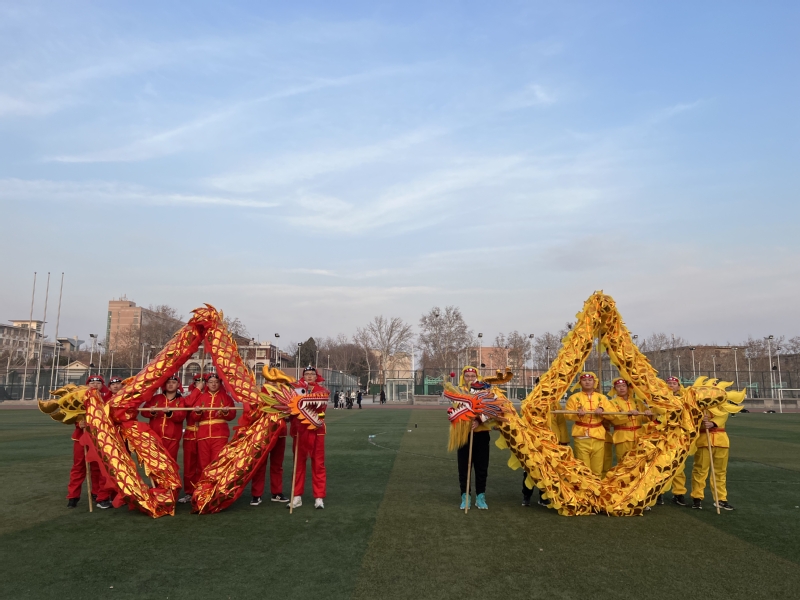 齐鲁学堂舞龙队最初源自2023年学校元旦舞会的舞龙舞狮表演,也基于此赢得了泰山民俗文化节更大的舞台。寒假返校后,舞龙队员根据活动要求,在舞龙教练高老师的指导下,重新编排了舞龙动作和造型,并开始了为期两周的集中排练。这段时间,齐鲁学子每天晚上保证2个小时的训练,他们深知,要将这一传统习俗尽善尽美的展现,必将经受疲惫和汗水的考验。几乎每天晚上,操场上一定会出现他们的身影。他们手持龙身,每一个动作都力求精准到位,每一个节奏都追求与龙自信、创新、进取、自立和协调的精神相契。一次次排练,不仅仅磨练了同学们对于传统习俗演绎的技巧,更加深了大家对传统文化魅力和深刻丰富内涵的认知。