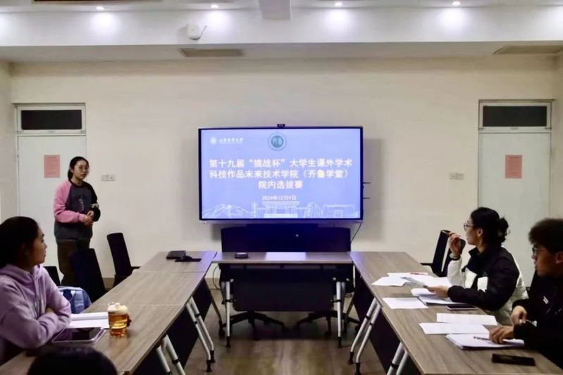 2024年12月,第十九届“挑战杯”大学生课外学术科技作品未来技术学院(齐鲁学堂)院内选拔赛在文理大楼1019成功举行。此次选拔赛旨在激发同学们的学术创新热情,挖掘优秀学术科技作品,为大学生提供展示创新思维和科研能力的舞台。