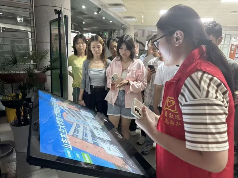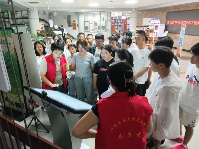 随后,在图书馆学生志愿者的引导下,2025级新生分组进行了实地体验。同学们亲自操作一站式检索机,体验了自助借还书设备,并学习了如何通过移动终端访问电子期刊数据库和专题知识库。
