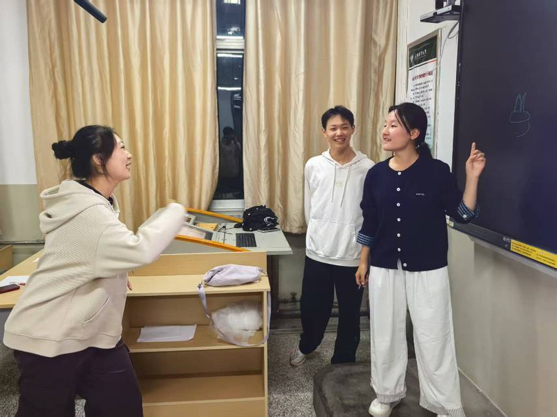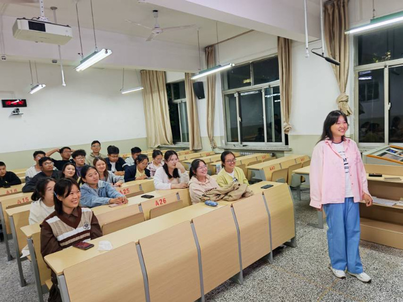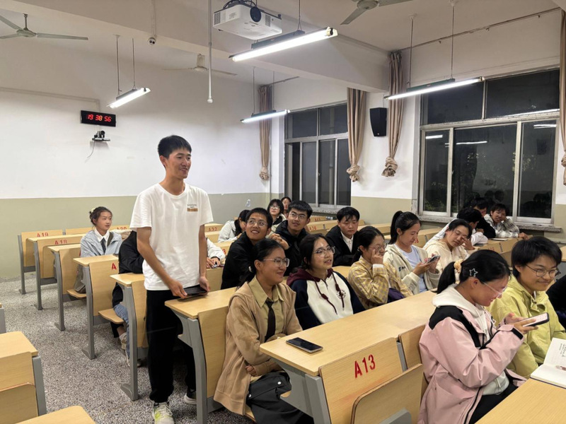 “乡音对对碰”环节中,同学们踊跃起身展示自己的家乡方言,有的用方言演绎日常对话,一句句亲切的“吃饭没”“去哪儿呀” 充满生活气息;有的分享特色俗语,生动的表达引得大家频频点头;还有的挑战方言绕口令,快速的语速和独特的发音让现场笑声不断。听者则专注聆听,积极根据方言猜测对方的家乡,同乡的同学更是借着这个机会,用家乡话热情互动、相认相识。