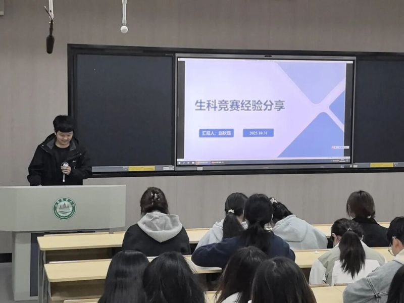 在第九期“我的学术我做主”活动中,邀请我院在2025年度第十届全国大学生生命科学竞赛(科学探究类)中斩获国家级一等奖的两位同学与荣获国家级三等奖的两位同学,为2023、2024级的同学们带来一场干货满满的经验分享会。四位获奖同学围绕赛事解读、课题方向、时间规划、材料准备及PPT展示等关键环节,进行了系统而详尽的讲解。本次活动旨在激励低年级同学汲取宝贵经验,力争在下一年度的竞赛中实现新突破。