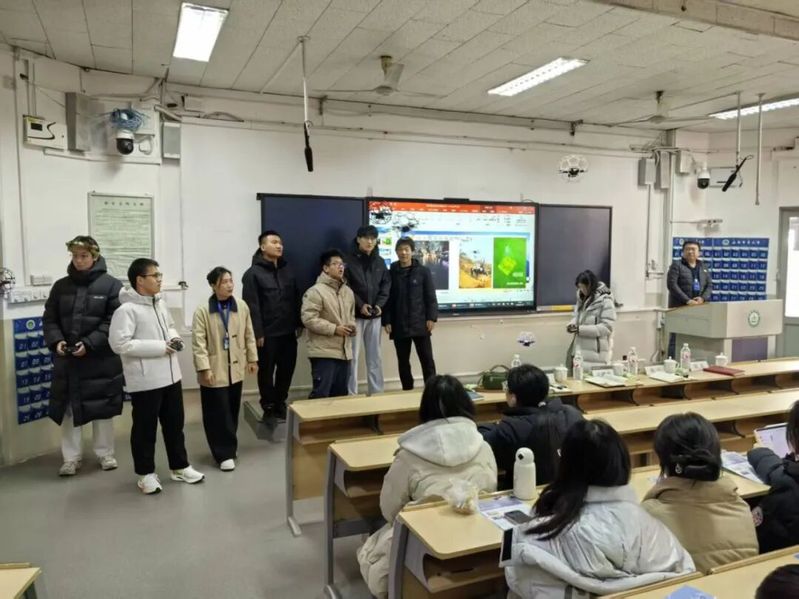 梁磊老师以“国家·专业·青春”为主线,用地面经济向上生长式生动口吻,将低空经济的核心定义、产业链条与万亿级市场蓝图娓娓道来,他结合2025年两会政府工作报告、“十五五”战略性新兴产业集群布局,剖析政策红利窗口期。理论讲解环节中,团队老师别出心裁地为在座同学们准备了足球无人机试飞体验环节。同学们在团队老师指导下完成理论学习、校准、起飞、落地全套流程,理论与实操相结合,现场气氛持续高涨。互动环节中,同学们踊跃回答问题,梁磊老师结合专业到产业集团的成长轨迹,给予耐心解答。