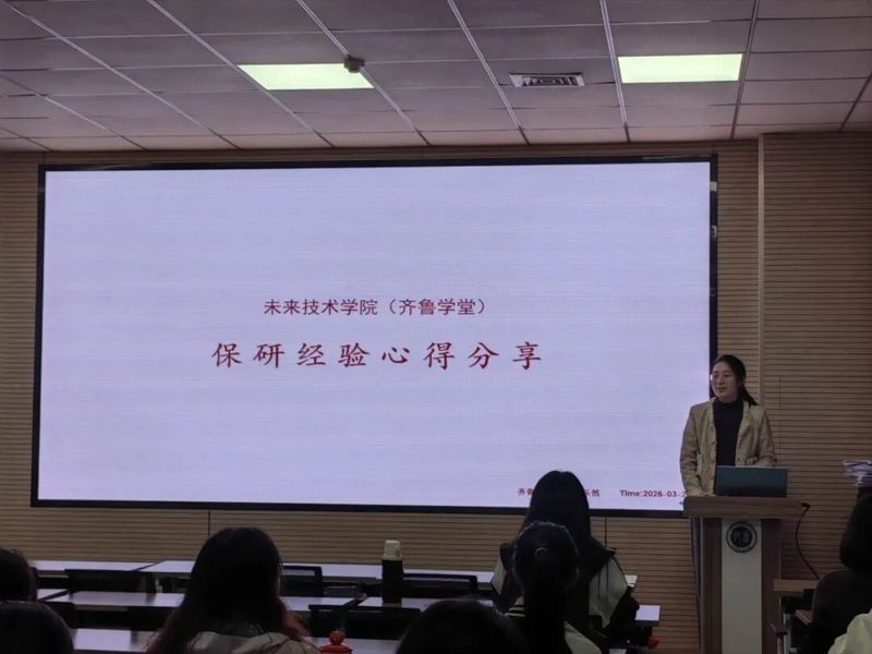 为帮助2023级学生明晰保研路径、掌握保研实操技巧,3月22日,未来技术学院(齐鲁学堂)于文理大楼103室举办保研经验分享会。2022级保研优秀学生陈翔宇、李乐然、韩洛冰、王岩受邀主讲,结合自身保研经历与筹备心得,从时间规划、材料准备、院校选择等核心维度展开系统讲解,为学弟学妹带来全方位、专业化的保研指导。