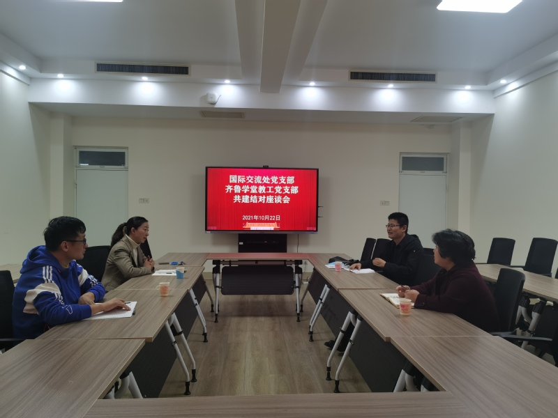 10月22日,齐鲁学堂教工党支部在文理大楼1019室与国际交流处党支部召开结对共建座谈会。