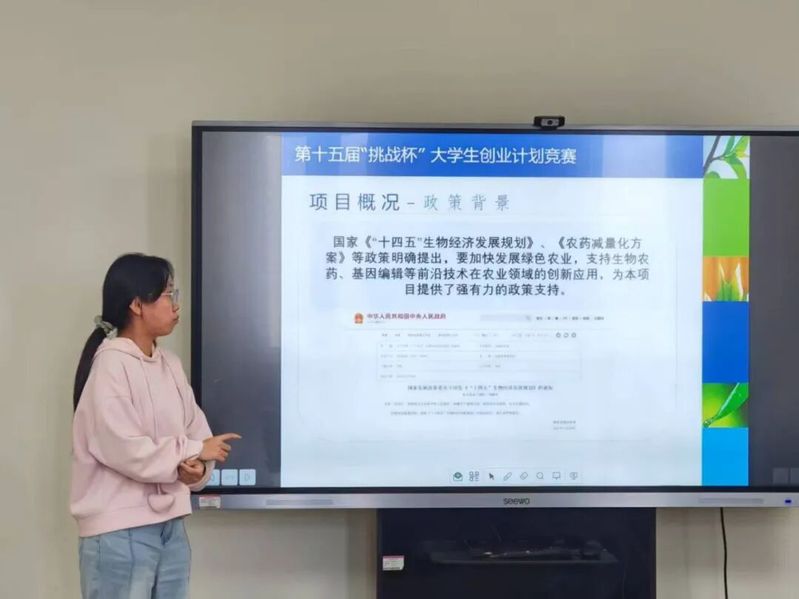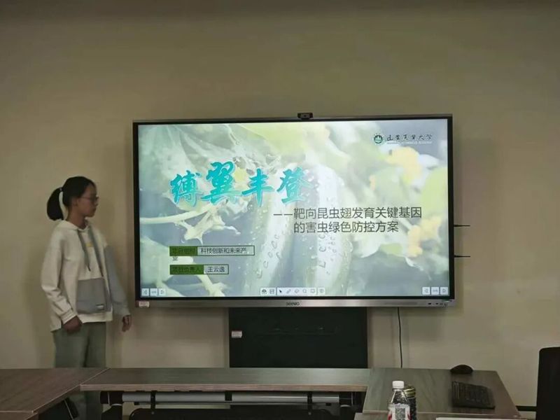 活动现场,各参赛团队依次登场,围绕“一“麦”相承———百万级EMS突变群体引擎小麦育种革命”、“一箭双雕——兼抗CMV/ChiVMV弱毒”、“纳铜卫士—基于氢氧化铜的绿色纳米农药”等课题展开汇报。同学们通过精心制作的PPT,从研究背景、实验设计、创新点到初步成果,进行了全面展示。