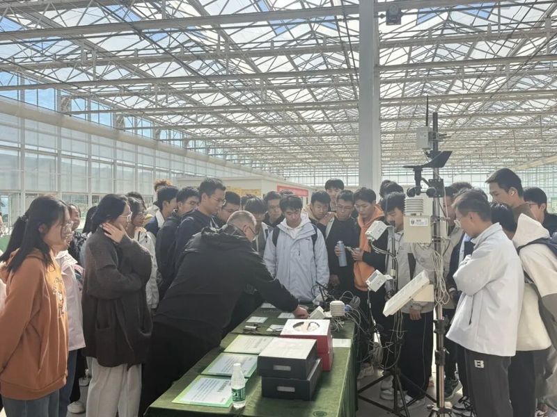 在科百产业园,新生们实地观摩了基于物联网的作物全周期数字化管理系统。园区广泛部署的各类传感器实时采集环境数据,结合云平台实现精准调控,生动诠释了“靠数据种植”的现代农业新范式。