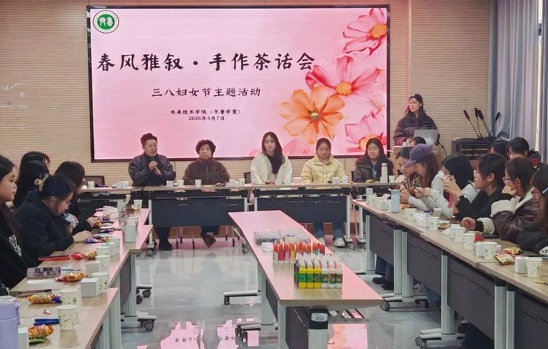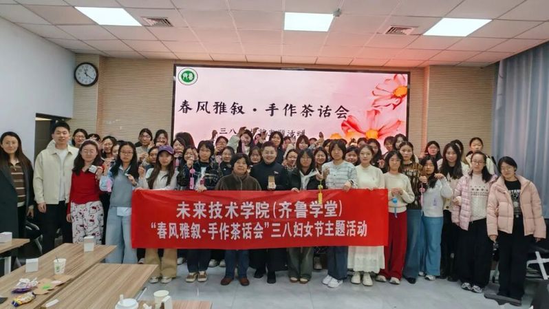 在三八国际妇女节来临之际,为致敬每一位女性的独立与美好,营造尊重女性、关爱女生的温馨校园氛围,未来技术学院(齐鲁学堂)文体活动部于2026年3月7日在文理大楼103自习室,精心举办“春风雅叙·手作茶话会”三八妇女节主题活动,邀请学堂全体女生齐聚一堂,在动手创作中感受乐趣,在轻松交流中传递温暖,共度一段惬意美好的节日时光。