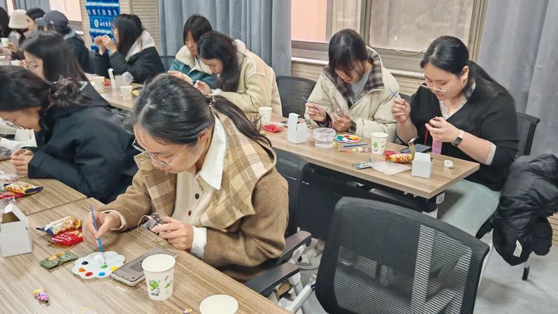 手作之余,活动现场全程提供特色茶饮与精美小零食,为同学们打造出雅致舒适的交流氛围。大家围坐在一起,在制作手工的间隙浅尝茶饮、分享小食,或是交流创作思路,或是畅谈校园生活,或是倾诉日常趣事,欢声笑语不断,同学间的情谊也在温馨的氛围里愈发浓厚。
